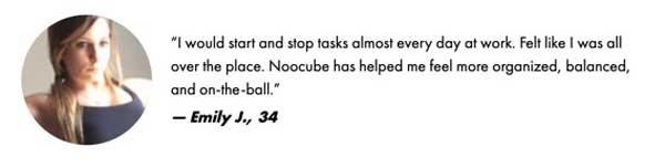 “I’ve noticed a big difference in my ability to concentrate since starting NooCube. It’s subtle but effective, and I love that it’s made from natural ingredients.”