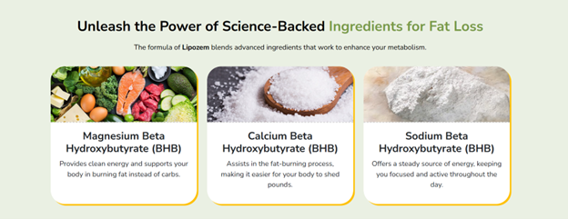 So, what makes it different? Lipozem contains a potent blend of Magnesium BHB, Calcium BHB, and Sodium BHB—exogenous ketones known to jumpstart fat-burning by mimicking the effects of a ketogenic state. This helps boost metabolism, curb cravings, and provide steady, clean energy throughout your day.